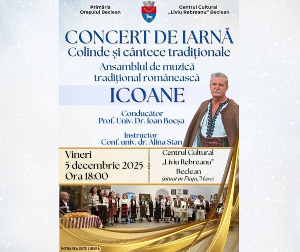 Pe 30 noiembrie, locuitorii se vor putea bucura de un spectacol de balet susținut de Alegria School Dance, urmat de un concert folcloric al Ansamblului Someșul Beclean. Pe 5 decembrie, scena centrului cultural va găzdui un concert de iarnă cu maestrul Ioan Bocșa și Ansamblul Icoane, cunoscut pentru autenticitate și virtuozitate.
