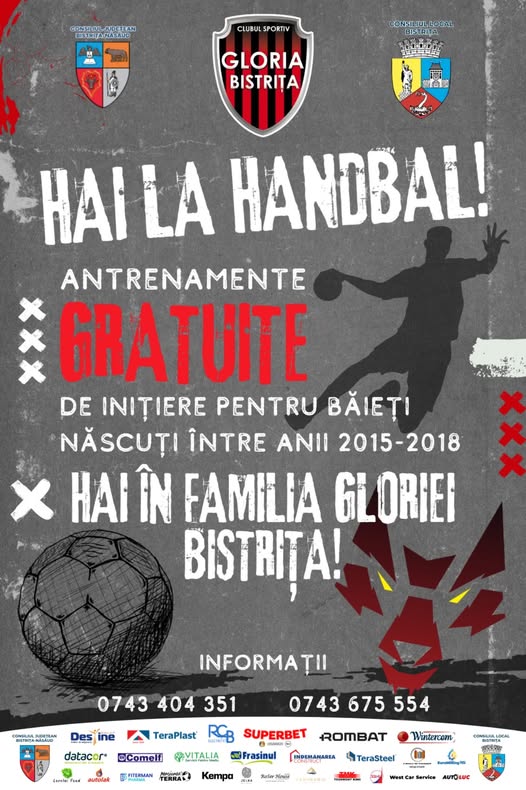 Clubul Sportiv Gloria Bistrița își deschide porțile pentru micii pasionați de handbal. Sunt așteptați să se alăture echipei băieții născuți între anii 2015 și 2018.